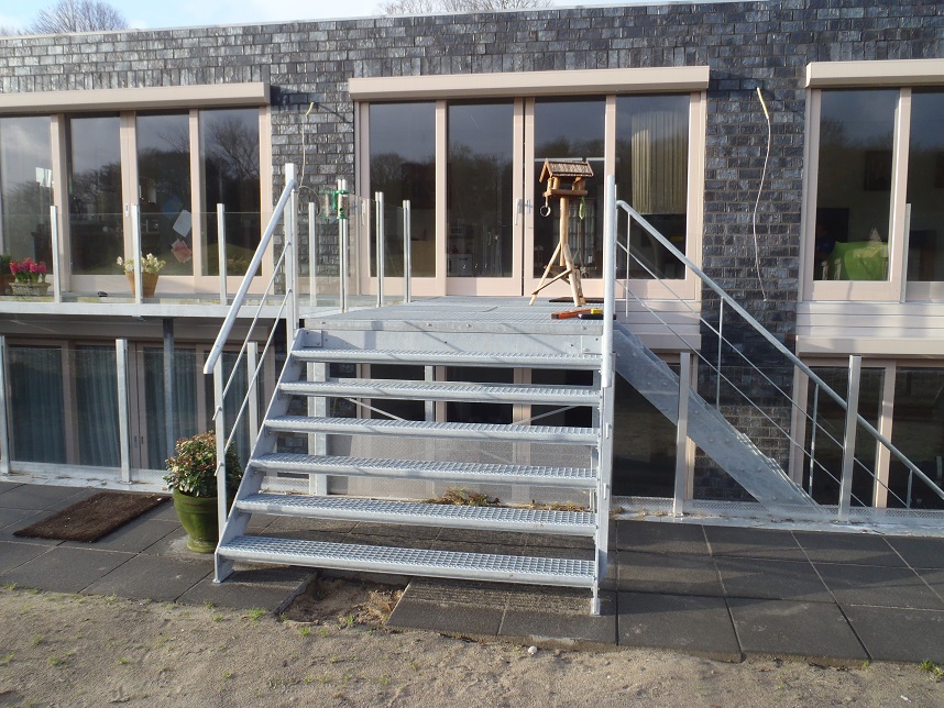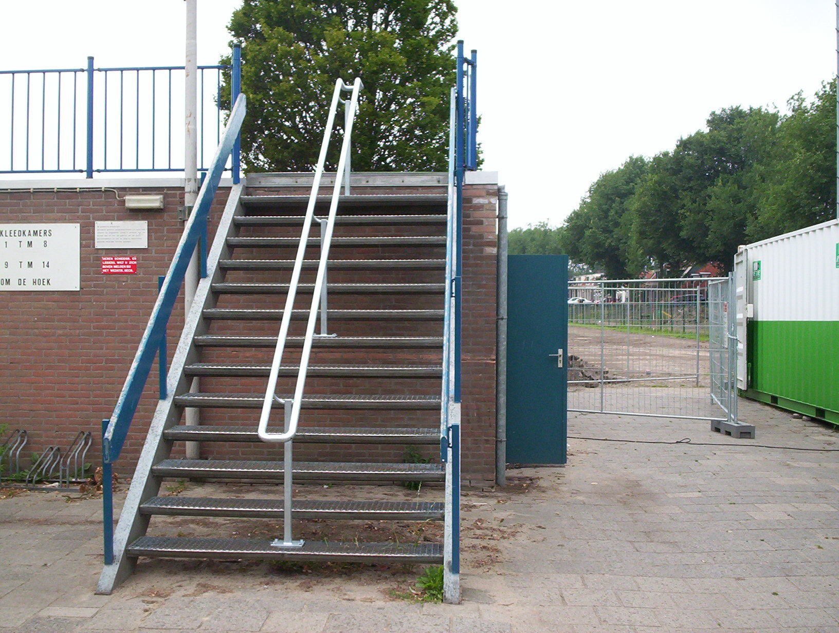 Stalen trapleuning voor de kantine van een voetbalclub in Amsterdam